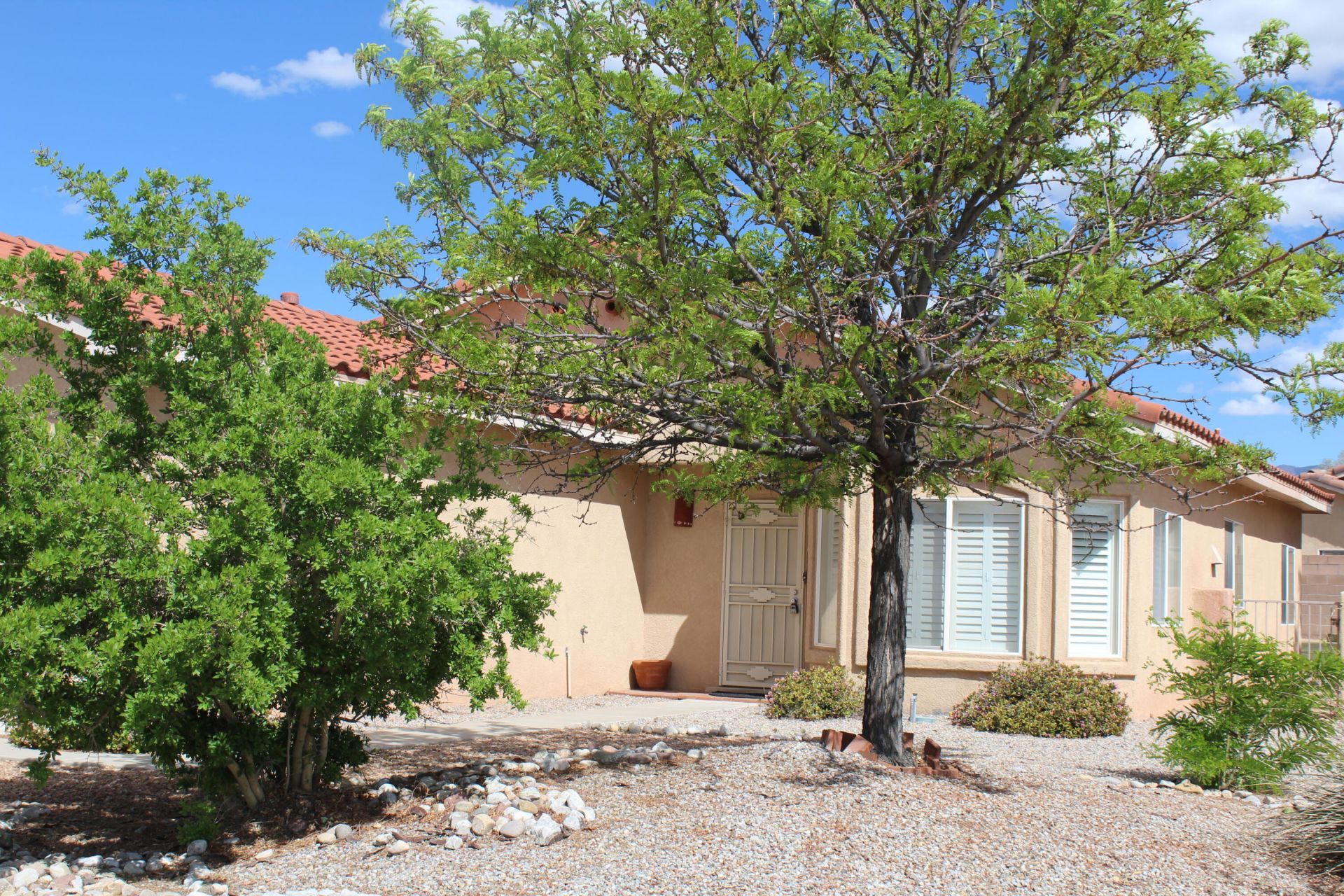 Single-story home featuring refrigerated air and a durable tile roof. This well-designed, award-winning floor plan offers easy, step-free access throughout with no interior elevation changes. Interior finishes include tile and laminate flooring in main living areas, with carpet in guest bedrooms. The home has been refreshed with clean finishes, fresh paint, and updated appliances. Enjoy a private, walled backyard and a spacious wraparound patio extending along two sides of the home--ideal for outdoor living. This 3-bedroom, 2-bath property also offers scenic views of hot air balloons and surrounding mountains.
